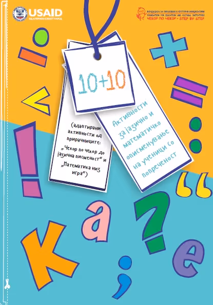 Handbook with activities for work with students with disabilities for improving their literacy and numeracy skills contains 20 activities for lower grades of the primary school . Two special educators from a special primary school in Macedonia made an adaptation of ten activities from each of the two previously published handbooks (“Step by Step to Literacy” and “Learn Math through Play”).