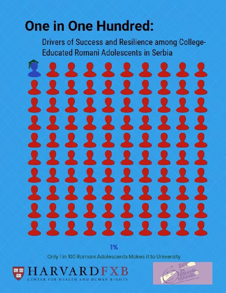 One in a hundred Roma makes it to University, why is that? The study One in One Hundred: Drivers of Success and Resilience among College-Educated Romani Adolescents in Serbia, is a collaboration between the François-Xavier Bagnoud Center for Health and Human Rights at Harvard University (Harvard FXB) and the CIP - Center for Interactive Pedagogy ISSA's member from Belgrade, Serbia.