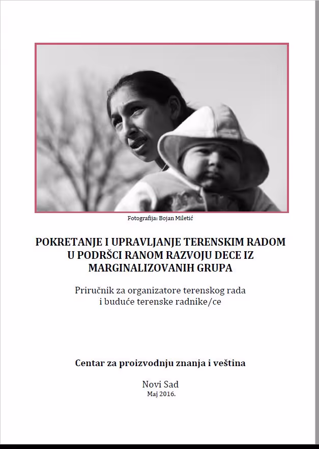 The manual for organizations and outreach workers - Establishing and Management of Outreach Work in Support to Early Childhood Development of Children from Marginalized Groups is a result of the project "Supporting the Early Childhood Development of children from marginalized groups in Novi Sad" implemented in 2015/2016 and financed by Otto per Mille Valdese Organization.