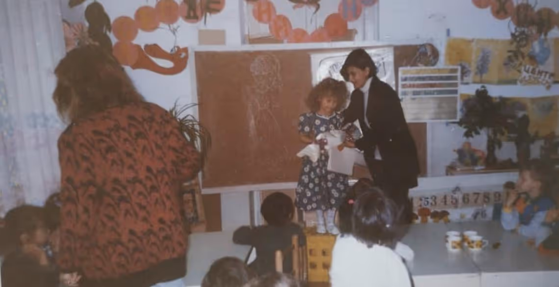 When I was studying for my pre-school teacher’s degree, I visited many kindergartens and schools, and I saw some differences with the one that I went to. For instance, the regular kindergartens did not have “centers”, as we did. These “centers” were meant for us to construct something, to read books, to develop our language abilities, and so on. Also, my kindergarten had a more individual approach. My mother was also my teacher, so I had, so-to-say, a double individual approach (laughing). Generally speaking, we did many activities with our parents which really brought us together. For instance, I remember creating a newspaper for the New Year with my parents. It was fun! I also remember how we picked acorns in the forest and made some figurines out of them.